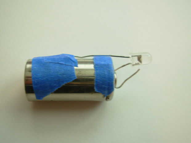 1. la mayor parte de la batería es un electrodo negativo y 2. Hay un pequeño espacio abierto entre el cable negativo de lo LED y al lado de la batería.
