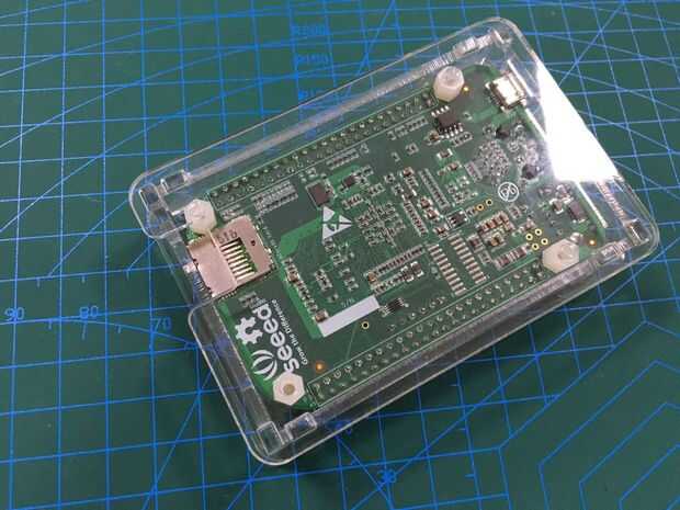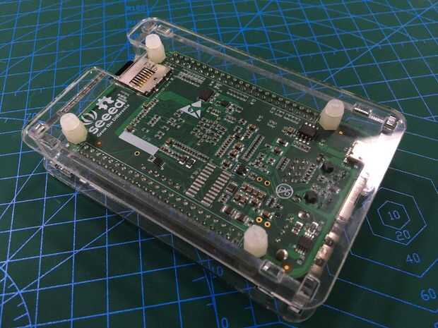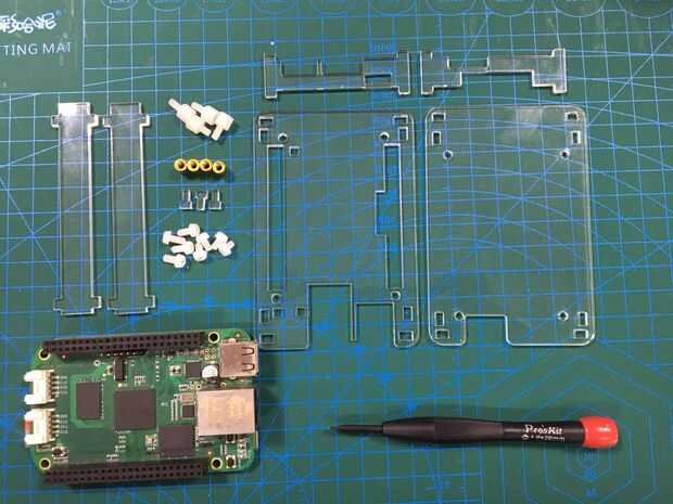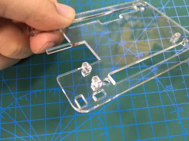 Siga el cuadro, primero Instale el stud y stud de machos en BeagleBone verde Wireless. A continuación, instale las piezas de acrílico. No te olvides de instalar el botón ~