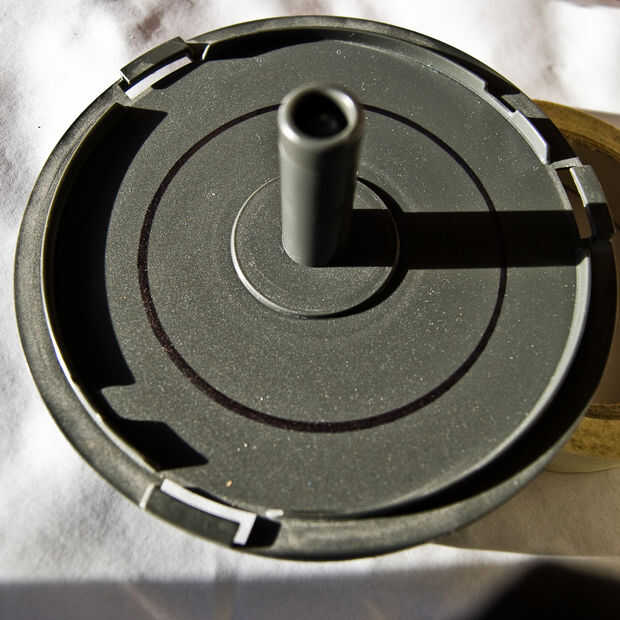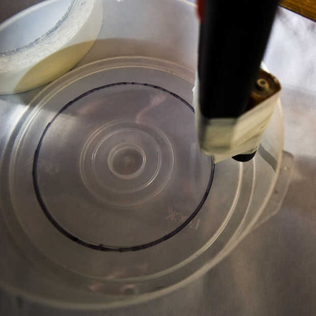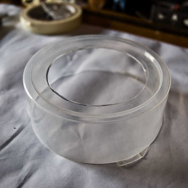 Usé el extremo grande de la visera del objetivo para uno de mis objetivos era lo suficientemente grande que cabrían más fácilmente, dibujé en el interior de la campana para marcar dónde cortar y lo mismo en la parte base de la caja.