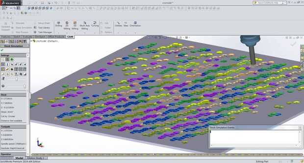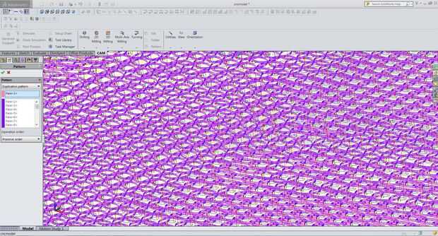 En el diálogo de patrones, elegir "Duplicar el patrón". Escoger la superficie configurar el bolsillo en su referencia y recoger el resto de las superficies a duplicar. Ahora debe tener cientos de bolsillos 2d.