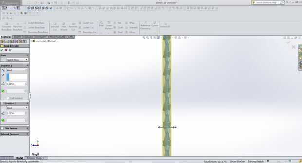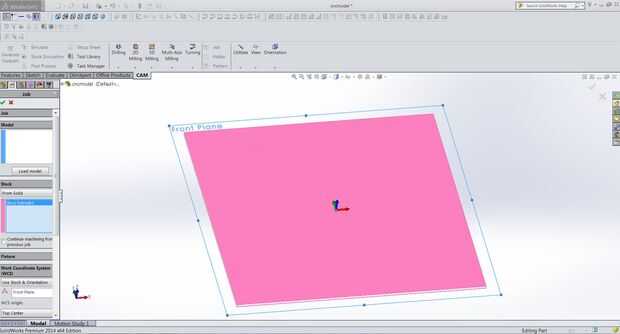 Para configurar la parte de mecanizado, que necesita para empezar con la geometría común. Comenzar un dibujo en el plano frontal y dibujar un cuadro alrededor de su modelo. Luego convertir este dibujo en un jefe extrusión y asegúrese de que la protuberancia es más gruesa que el modelo en ambas direcciones. Tratar de hacer la superficie como cerca de la geometría del modelo como posible.