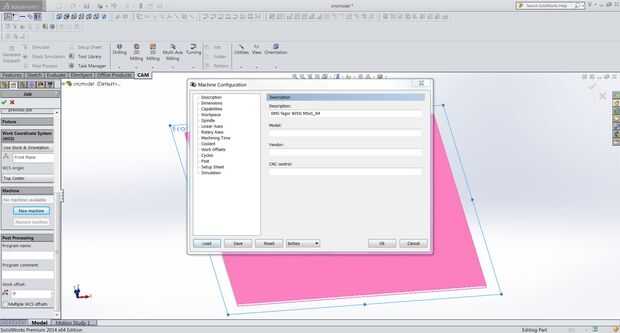 Haga clic en la carpeta de trabajo en la ficha HSM para poner en marcha su proyecto. Definir la acción como un sólido y elige el extruido (puede ocultarla después de esto) y cargar la configuración de la máquina.