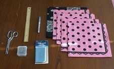 Máquina de coser, plancha, regla, lápiz, tijeras, alfileres, 5 pañuelos (aproximadamente 22 pulgadas de cuadrado), de la marca hilo.