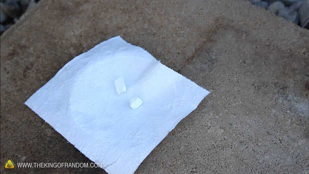 Utilice la tapa de un frasco como su base de arranque. Cubrir con un cuadrado de papel higiénico y coloque los trocitos de sodio en el medio.