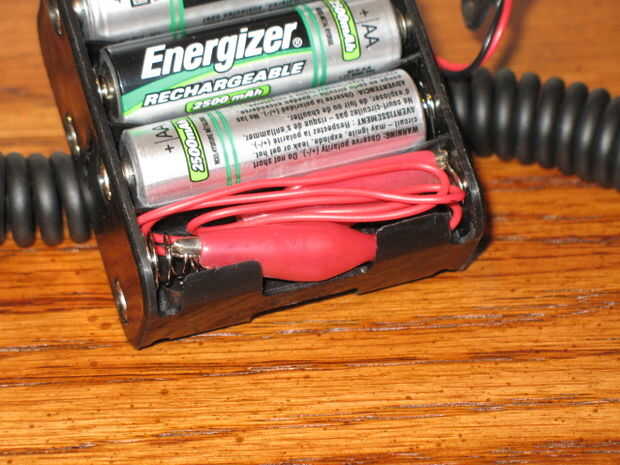 Después de horas de investigación, finalmente surgió una solución. He creado una batería de maniquí de un puente. Ahora tengo un circuito completo! Esto también me da la flexibilidad de usar pilas alcalinas 5 o 6 si es necesario.