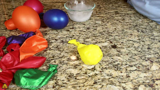 Con cuidado coloque uno o dos de las piezas dentro de un globo y lo ate. Observarás que el globo comienza a inflarse por sí mismo.