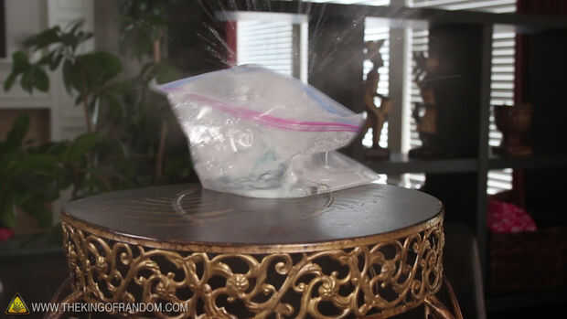 Ahora esto es totalmente seguro, y lo puedes hacer con resistentes bolsas de congelación, así. El plástico es un poco más grueso, un poco que más presión puede construir antes de ir.