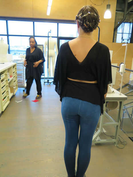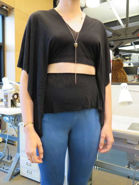 [Eryka y Ama modelo la versatilidad de la prenda, se puede usar con el lado abierto en el frente o hacia atrás].