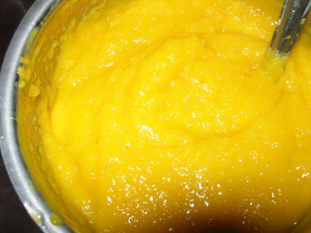 Añadir azúcar al gusto. (la cantidad de azúcar dependerá de cuán dulce es su mango y qué dulce te gusta!). luego licue la mezcla una vez más. Después de agregar esta sémola cocida en la mezcla y mezcla bien hasta que llega a ser muy suave. (usted puede también combinar esto para obtener una mezcla uniforme.