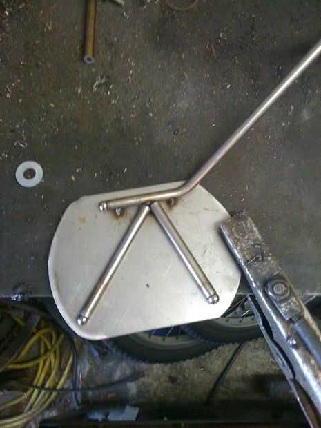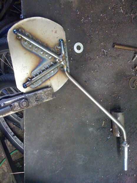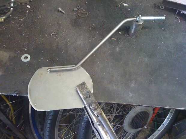 Tachuela soldada con autógena el perno hasta el final y la chapa a la varilla de empuje de apoyo que no puede ser necesario si usted está usando más pesados del metal de hoja.