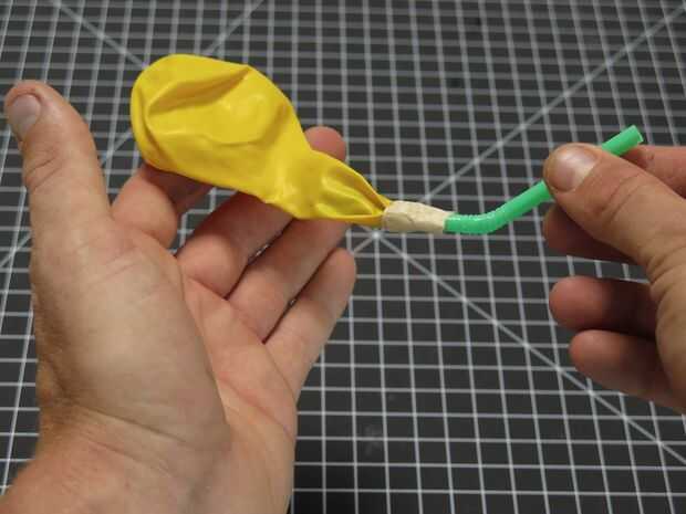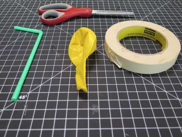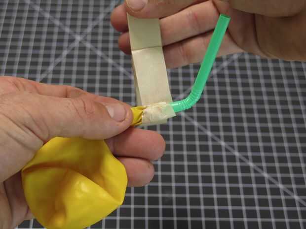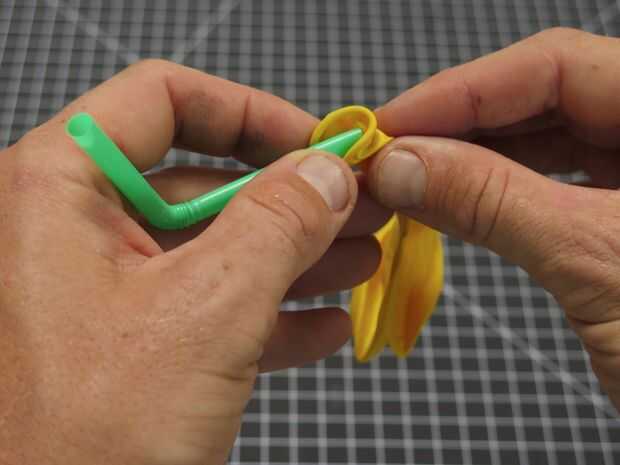 Cortar un codo de una paja bendy, inserta en el globo y cinta adhesiva! Inflar el globo a través de la paja, doblar al lado y dejó es spin!