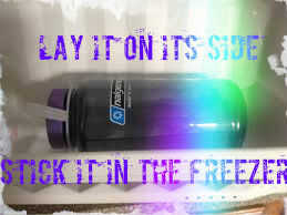 Llenar su botella de agua 1/3 de lo completo con agua, luego póngala de costado y meter en el congelador. Cuando usted lo necesita, tomar del congelador y llénelo con agua fría. Cubo de hielo enorme!
