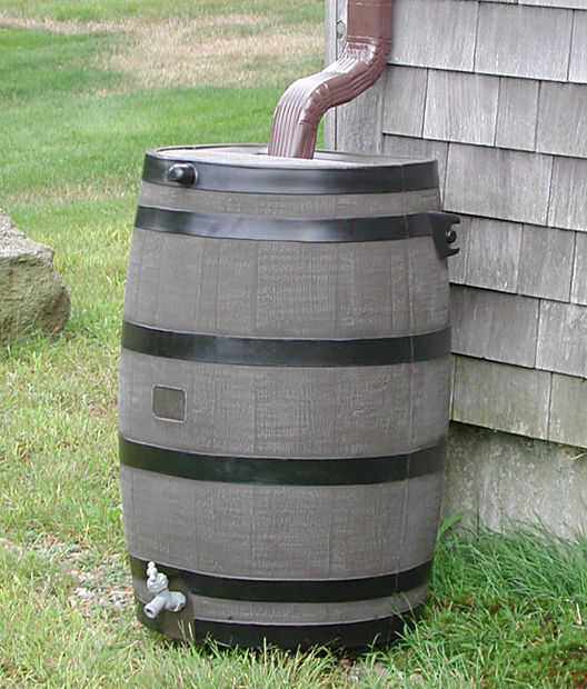 Coger la lluvia en un barril. Generalmente las personas ponen en el pico. El agua desde el techo rollos en un canal. El agua deja el canal a través de la boquilla. Utilice uno de los muchos instructables en este sitio para aprender exactamente qué hacer. Uso de las plantas al agua alrededor de su casa.