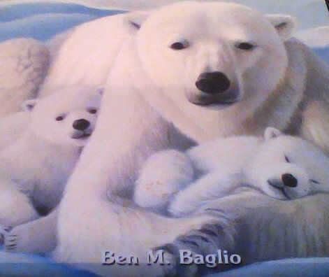 en la foto de arriba, 3 osos caminar a través de hielo marino agrietado. Calentamiento global se está convirtiendo en un problema porque lentamente se derrite el hielo en el Ártico y los osos polares se quedarán pronto sin su casa helada. ¿No lo harí