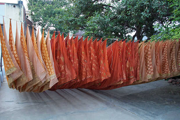 A intervalos regulares, como una vez en 6 meses, desempaquetar y seco la sari bajo el sol por una hora o tan antes de que vuelva con cuidado. Esto mantiene el paño limpio y libre de bacterias.