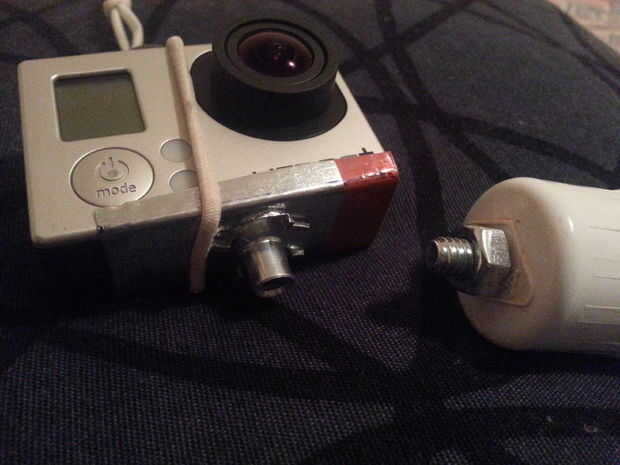 Yo quería utilizar mi GoPro para un lapso de tiempo de 5 horas de una planta de llegar hacia el sol. La GoPro batería no durará este largo, así que necesitaba que lo mantenga conectado. También debe ser sobre un trípode. Pero cuando esté enchufada, no puede caber en su vivienda, que es la forma habitual para montarlo sobre un trípode. Así que necesitaba una manera de montar una GoPro no alojada en un trípode.