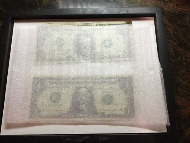 Para este lugar simplemente encontrar un cuadro con un marco en él. Tengo una linda de mi oso perro y que funciona perfectamente para este proyecto. Simplemente thane el dorso fuera del armazón, boca el dinero en poner la parte de atrás de nuevo y devolver el cuadro a su posición original.