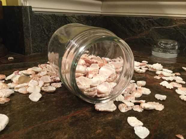 Para barras de metal, lo que haces es poner la jarra en su lado y llenar la mitad con cáscaras. Luego coloque la barra sobre las conchas y terminar llenando la jarra. Una vez que el tarro está lleno debe ser capaz de levantarse sin la barra de exponerse. Si luego no se puede agregar sólo más conchas.