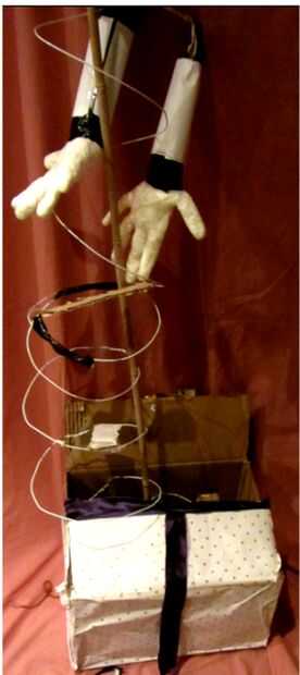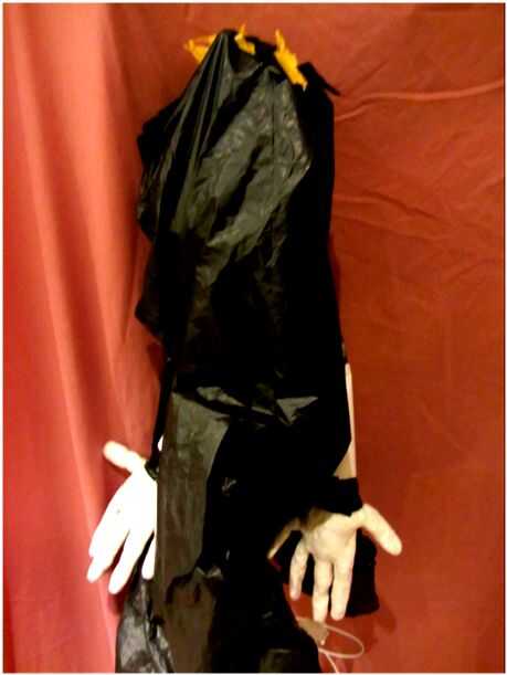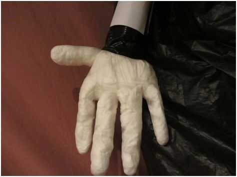Dos cilindros de cartón en la primavera del palillo sí mismo usando la cinta del conducto (y bridas para la fuerza agregada si lo desea) estos serán los brazos. A continuación, tomar dos guantes de látex y material con papel higiénico o algodón para un efecto 3D añadido, para llegar a los dedos y un lápiz para jab el relleno pulg pegan estas manos sobre los brazos usando, otra vez, conducto de cinta o pegamento caliente. tienes los brazos completados.