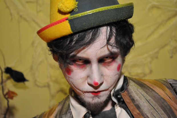 ... y aquí está el proyecto terminado! Unas camisas de estilo victoriano ondulante, un extraño cinturón oro encontrado en una tienda, algunos más cuidadosamente aplicado maquillaje, un chaleco raro y un rasgado hasta broca de tela amarilla atada a mis codos y todo vino junto en el extremo! Yo estaba preocupado que el mazo no el cuadro del suelo toda la noche, pero era capaz de mover y a bailar en el cuadro (aunque no pude sentarme, pero sabía antes de tiempo). Con todo, considero que es un éxito!