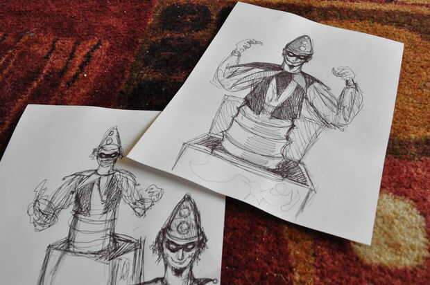 Siempre, siempre, empiezo mi disfraz de halloween con bosquejos para determinar qué aspecto quiero lograr. Además siempre me encuentro entretenido para ver de que manera difiera de mis ideas iniciales, y de qué formas mejorar mis ideas iniciales. Por ejemplo, originalmente pensé que iba a hacer la máscara de ojo todo (me compré uno) y collar rizado cosa (hice uno) según los bocetos anteriores--pero al final sentía estos artículos no se veían bien con el traje real. De todos modos, tenga estos bocetos en cuenta vamos a través del proceso de construcción de este chico malo y espero que sea tan divertido para usted como para que mí Comparar con el producto terminado :)