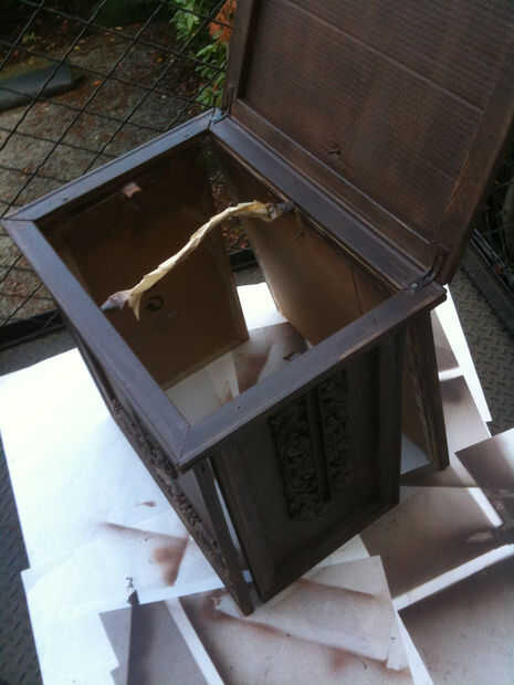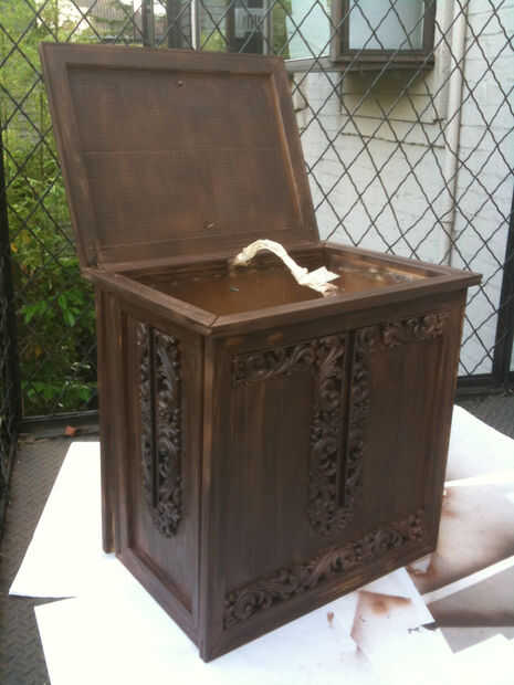 Disfraces de Halloween 2011 de mi hijo. Construido a partir de un casco, papel maché, chaqueta de piel y bolas de madera para los ojos.