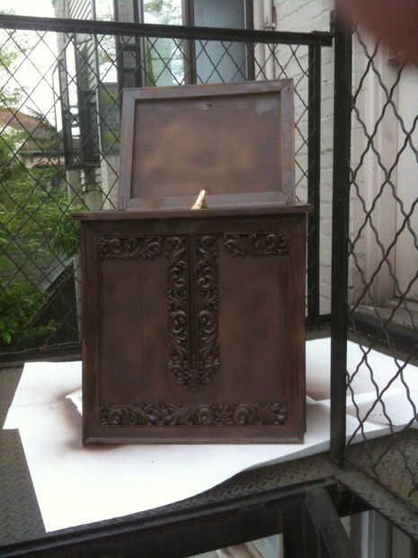 trataba de Halloween 2011. El pelo de Marge es cartones de huevo pegadas y pintado de azul y los ojos de los Simpson son marcos de plástico blanco con una malla de tela pegada en. Vientre de Homers es dos camisetas cosidas en la parte inferior y re