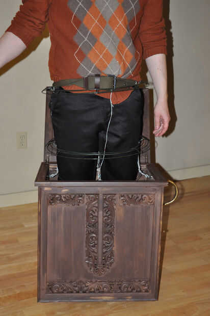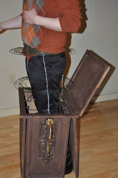 Originalmente iba a usar elásticos y hebillas para el arnés para permitir que la caja a flote... que iba a crear una estructura subyacente de la liga, pero porque empecé a enfermarme hacia las partes posteriores del proyecto y soy un drenaje muy lento mano, decidí usar alambre de foto en su lugar debido a su fuerza relativa y la facilidad de que esconder debajo de la estructura de acordeón.