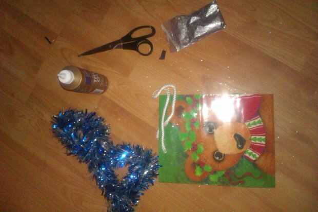 Primer paso es sencillo. Reunir tus decoraciones feos. Una llanura blanca cremallera suéter, tijeras, pegamento pegajoso o super, oropel (cualquier color), brillo, arcos y una caja de regalo decoradas de cartón, unos pequeños bulbos de Navidad, y finalmente algunas ramas cortadas de eso feo viejo árbol de Navidad artificial le consiguieron de tus suegros última Navidad.