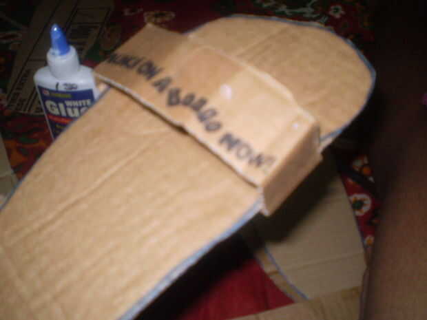 Después de tener el tamaño correcto de la correa, haz tu todo propósito pegamento y pegarlo en la parte inferior de la primera base de cartón. Deje que se seque.