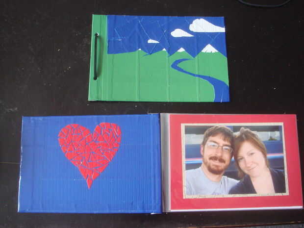 Este día de San Valentín que intentaba pensar en algo casero a mi esposa. Ella se va para el entrenamiento básico de fuerza aérea en marzo y quería algo que ella podría hacer con ella y hacer su sonrisa, cuando está chupando la vida. La primera idea fue hacer un embrague foto casera (es un mini álbum en forma de un bolso de embrague). Esto habría sido una gran idea pero no pude encontrar el hardware para que esto ocurra (alguien debería hacerlo y ponerlo aquí). Así que puesto que todavía era una buena idea, cambiado en esto. Es un disco de aspecto muy agradable, para ser hecha de cinta pato, y ella realmente le gusta. Además puede hacerlo muy personal y poner sus fotos favoritas en él y decorar muy bien. Espero que todos ustedes muy útiles esto! (para que sepas, hice la cubierta verde como una demostración, no termine ese álbum y pasé menos tiempo en él que el azul)
