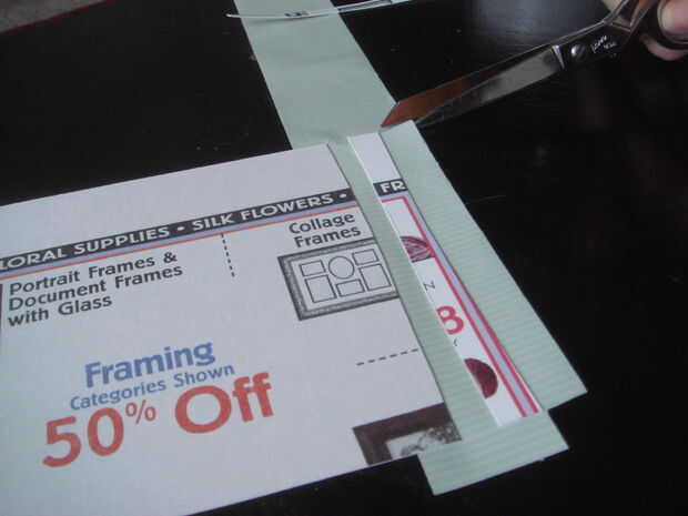 Las fotos describen este paso mejor que yo en palabras. Sacar y cortar una longitud de pato cinta (cubierta de lo que cada vez que quieras vinculante/cubierta del ser) que es un poco más de dos veces la longitud del enlace y pone sobre la superficie de trabajo, el lado pegajoso hacia arriba. Pone el enlace y la cubierta de la cinta en el mismo orden como eran originalmente antes de que se cortaron, thay que encajan como un rompecabezas. Tratar de conseguir lo más recto y paralelo a la cinta como sea posible y no presione hacia abajo hasta que estés satisfecho. La tira de 1/2 pulgada debe ser aproximadamente 1/2 una pulgada desde la parte superior de la cinta, por lo que puede plegar y cubrirla. Una vez que tengas las tiras donde quieras, todo perfectamente en la línea, pelan el 1/4 en tira. Ello, por lo que no cambia la longitud de la cubierta poniendo a cerca o lejos de la franja de 1/2 pulgada. Se vería mal si las mangas pegan hacia fuera más allá de la cubierta. Presione las piezas en la cinta de pato.