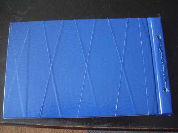 Ahora que se hacen ambos enlaces, cinta sobre la cartulina/cartulina de todos modos ves y en cualquier color. En verde solo hice tiras rectas, pero en el libro azul que iba para la especie de un tejido/trenzado parecen (especie de cuero o lino en la guarnición de algunas espadas). No resultan tan bien como esperaba, pero es mejor que solo rectas y hecho algunas formas agradables para romper la monotonía. Estoy seguro de que hay todo tipo de patrones se puede hacer, así que ser creativos y pensar acerca de lo que su pareja le gusta más.