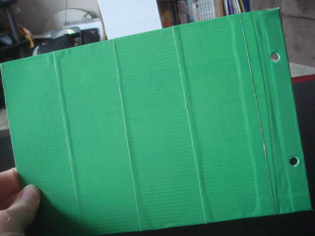 Esta parte es bastante recta hacia adelante. Sus mangas de la foto deben han llegado con encuadernadora anillo agujeros. Use estos agujeros como plantilla y dibuja un pequeño punto o hacer una marca en su enlace donde los agujeros deben ser. Luego perfore los agujeros con la perforadora. Una palabra de Consejo: Estás golpe a través de 1 hoja de cartón/cartulina y unas 4 capas de cinta, por lo que será difícil. A menos que tenga algún tipo de perforadora de fuerza industrial, pondría en unos guantes de invierno gruesa antes de intentarlo, porque esa pequeña perforadora manejar duele cuando está poniendo toda su fuerza en él! Puede tratar de perforar una forma, luego Dale la vuelta y golpear desde el otro lado. ¡Buena suerte!