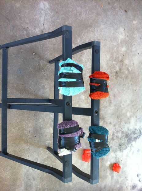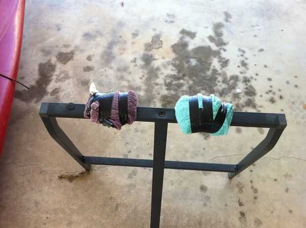 Una vez más simple. Tomar tus trapos y pliegan hasta llegar a un gran fajo de billetes. Colocar sobre 2-3" fuera del centro de la unidad de la pierna y la cinta en su lugar. Quieres espacio hacia fuera así que acuna el Kayak en su lugar, no sólo dejaron sentarse en ellos. Por supuesto si tienes un barco con fondo plano más luego extiéndalas, mayor estabilidad mejor cuando su trabajo en él o limpiarlo.