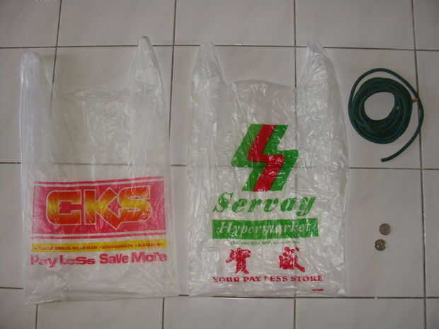 2 bolsas de plástico de igual tamaño (cuanto más gruesa la más fuerte el bolso plástico)