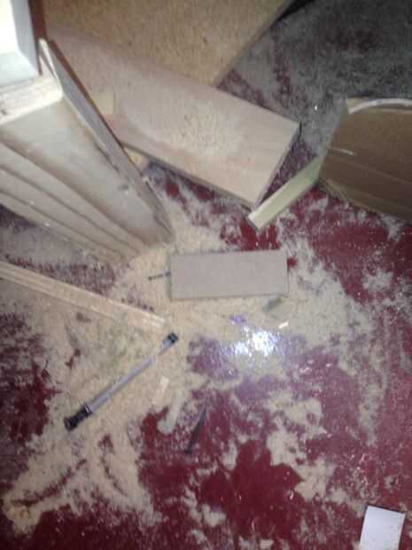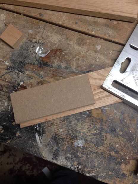 mirar hacia abajo y encontrar un pedazo de chatarra lo suficientemente grande como para garantizar sus dos piezas angulares juntos. Encontré un MDF y un lugar que necesario barrer más adelante.