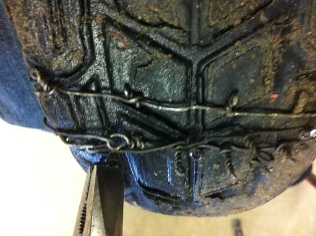 en este punto el alambre será un poco suelta ho por delante y apretar los diablos de los lazos individualmente para fortalecer los "postes" y apriete el cable.