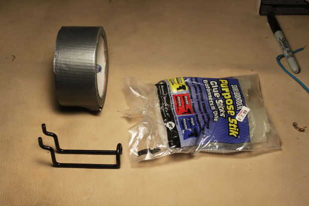 1. Arrancado de pegboard bolsa o contenedor de lo que sea digno (en este caso es una bolsa de pegamento caliente)