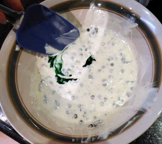 Revisa la Cookies n' Creme - no sólo se derriten más rápido de lo que esperaría de chips de chocolate blanco, esos pedacitos de galleta look realmente extraños cuando añades colorante. Factor ick de bono!