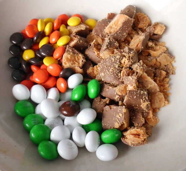 Era cuidadoso con la distribución de color, pero podría saltar el absurdo borrachísimos y descarga tus dulces en allí a la vez. Sólo asegúrese de pulsar el caramelo en para que se la pega al chocolate.