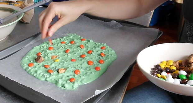 Si es un día caliente, poner el chocolate en la nevera para establecer; en un día fresco, debe establecer rápidamente allí en el mostrador.