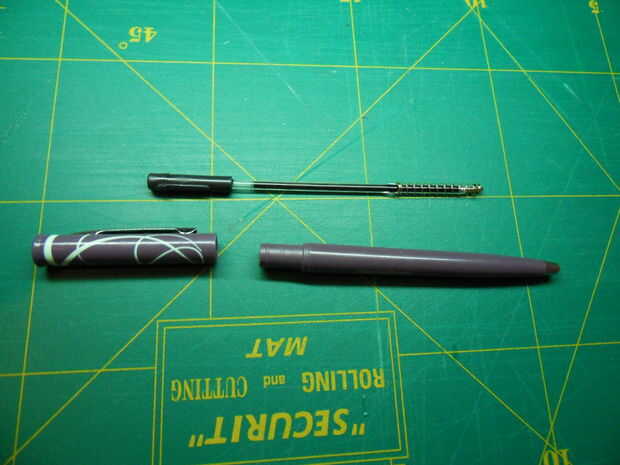 materiales necesarios:* pluma/aproximadamente 1 cm de anchoyringe 1 ml s/ aguja si eres una verdadera espía* sharp cuchillo o Sierra pequeña* y a ti mismo------------------------------------------------------------Paso 1: Desarmar la pluma 1.) sacar