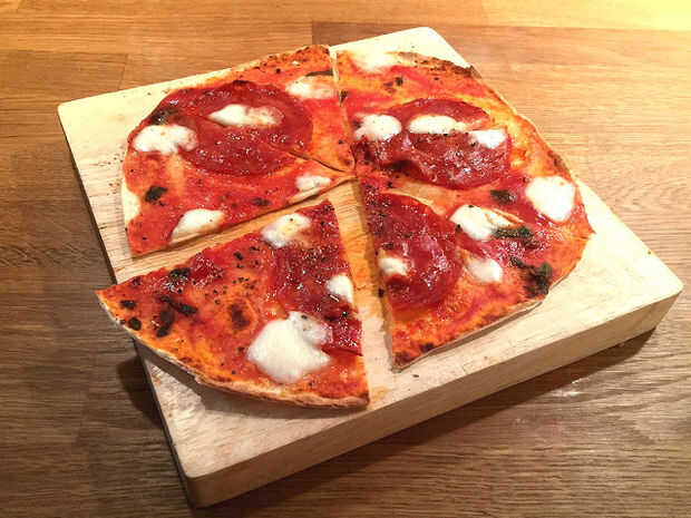 Perfecta pizza de corteza delgada en 7 minutos tiempo de cocción
