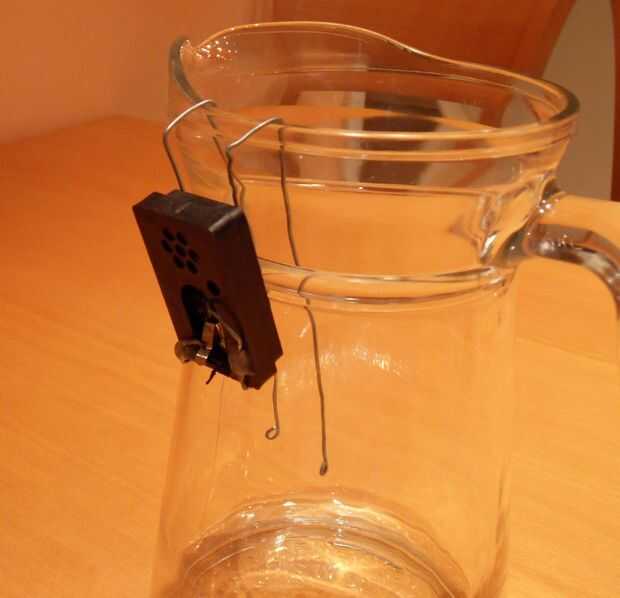 - Doblar los cables alrededor de la carcasa, asegurándose de que no toque. Deje una separación de 1-2cm por lo que puede ser colgado en el lado de una jarra.