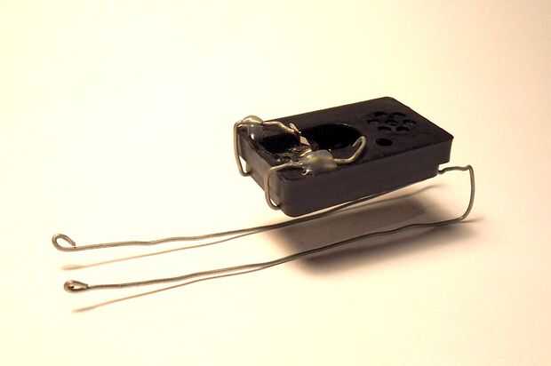 Porque no tengo mucho experiencia electrónica, he hecho de basura. Para hacerla usé juguete infantil barato que conseguí de la revista infantil. Básicamente, era un pequeño saco que risa si usted aprieta. El sonido que hace no es perfecto, pero funciona bien. En vez de esto se podría utilizar cualquier juguete que hace un sonido cuando se presiona un botón. Felizes juguetes comida probablemente funcionaría perfectamente.