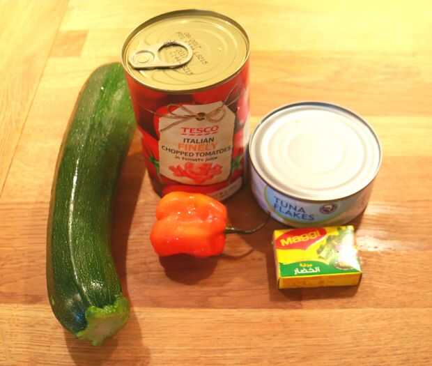 5 minutos Spicy Tuna Courgetti (1 / 4 paso)