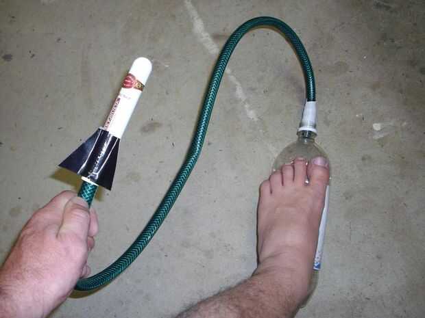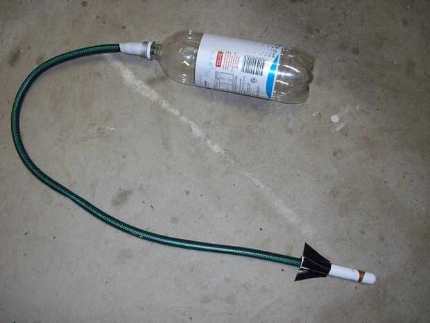 Sople por la manguera volver a inflar la botella entre lanzamientos, o sacar la manguera y si le resulta más fácil.