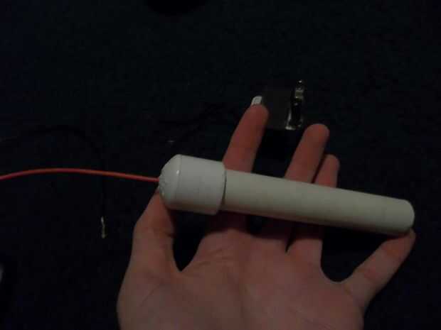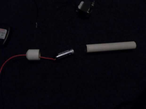 un cable a uno de la pila de la cinta y ponerlo en el tubo de pvc luego enrosque el alambre por el orificio de la tapa