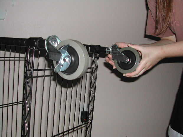 Recientemente se mudó y no has decidido qué mueble que quiero en mi habitación. Mientras tanto, en lugar de una cómoda estoy usando una estantería. Guardo mi ropa en cajas modulares apilables, ligero, que conseguí en una tienda grande de la caja a la venta. Para hacer esta unidad más accesible, me compró un juego de ruedas en la ferretería por $20 e instalarlos. Ahora tengo una barata pero robusto, fácil de usar, la unidad móvil que puede desplazarse con poco esfuerzo. Si necesito para llegar a la toma de corriente o recuperar algo que rodaba por debajo o simplemente quieres cambiar mi cuarto alrededor, yo puedo mover la estantería sin ayuda.